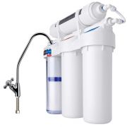 4 фильтрующих элемента / 5 ступеней очистки Универсальная очистка + обезжелезивание + финишная очистка Кран для чистой воды Первый корпус — прозрачный