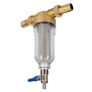 Малогабаритный магистральный сетчатый фильтр для механической очистки холодной воды, с краном промывки