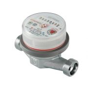 Водосчетчик универсальный – для измерения расхода холодной и горячей воды, главным образом – в квартирах. Условный диаметр модели – 1/2"; номинальный расход воды – 1,5 куб. м/ч. Длина прибора без сгонов – 80 или 110 мм. Резьба присоединительных патрубков – 3/4".